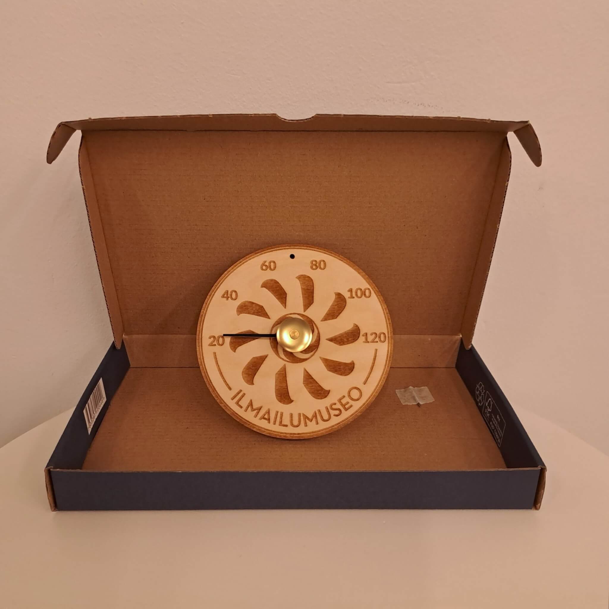 The stylish sauna thermometer features the Finnish Aviation Museum’s propeller logo. The thermometer is a perfect a gift or a souvenir, especially for a summer gottage. The thermometer comes in a handy gift box.