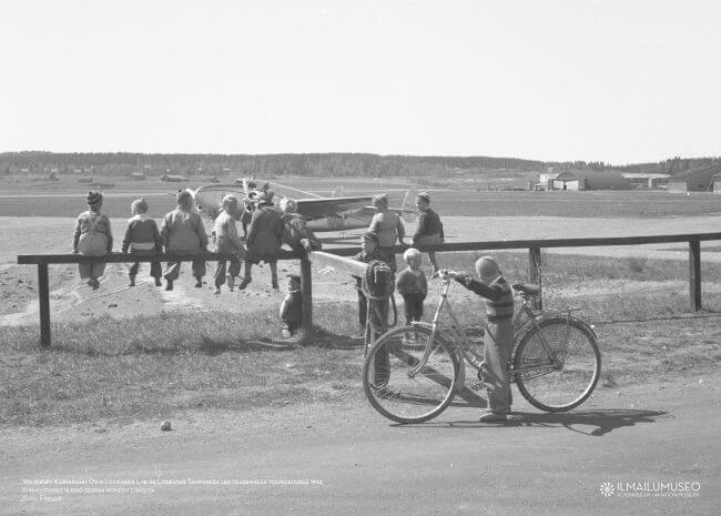 Uniikki juliste on teetetty Suomen Ilmailumuseon kuva-arkiston aarteista. Julisteessa Veljekset Karhumäki Oy:n Lockheed L-18-56 Lodestar OH-VKO on poikien ihailtavana kentällä, koelennon Helsinki-Tampere-Tukholma 20.5.1952 aikana.